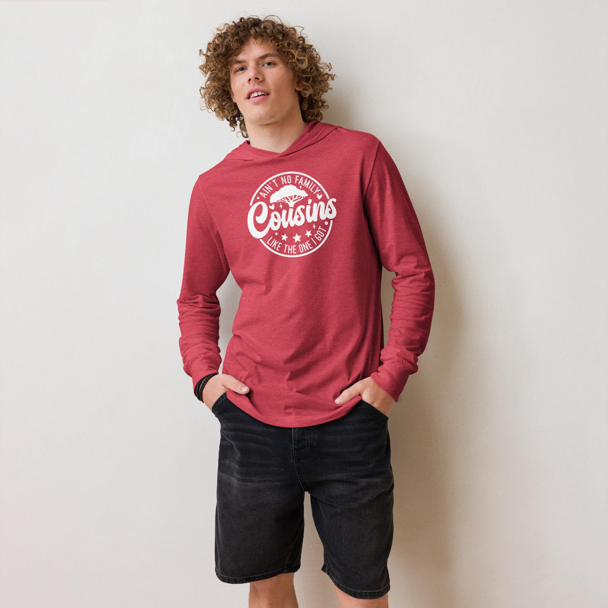 With its long sleeves and comfortable hood, this tee is perfect for layering, allowing you to create stylish outfits all year round. Plus, its lightweight construction allows for unrestricted movement, ensuring that you feel at ease no matter the occasion.